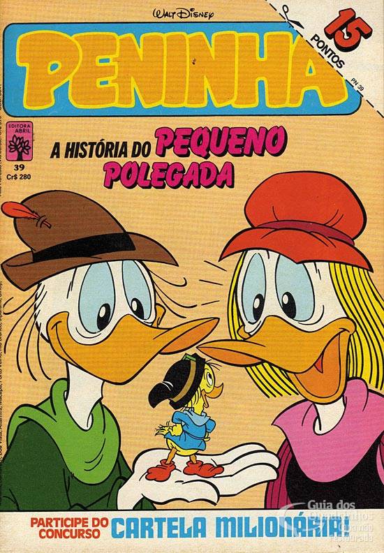 Sátira Disney do conto “O Pequeno Polegar” (1697), de Charles Perrault. Biquinho é o personagem-título, Peninha é Penoso, Glória é Gloriosa e Bigode e Comprido são Barbinha e Cartola.
