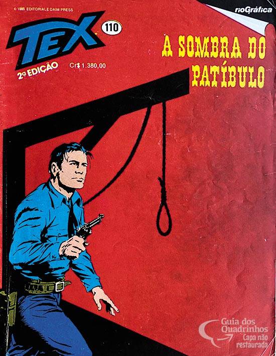 Título original italiano: “L’ombra del patibolo”. Continuação do n° anterior. Vítima de uma bem organizada conspiração, Tex é condenado a 20 anos na penitenciária, mas consegue fugir de lá com a ajuda de Carson. A notícia da fuga abala a quadrilha comandada por um influente empresário de Flagstaff. Myra Solano, membro da gang, detém documentos que comprometem o chefão e, para se livrar de uma condenação longa, entrega-os a Tex. É então que o homem de Flafstaff manda matar Myra...