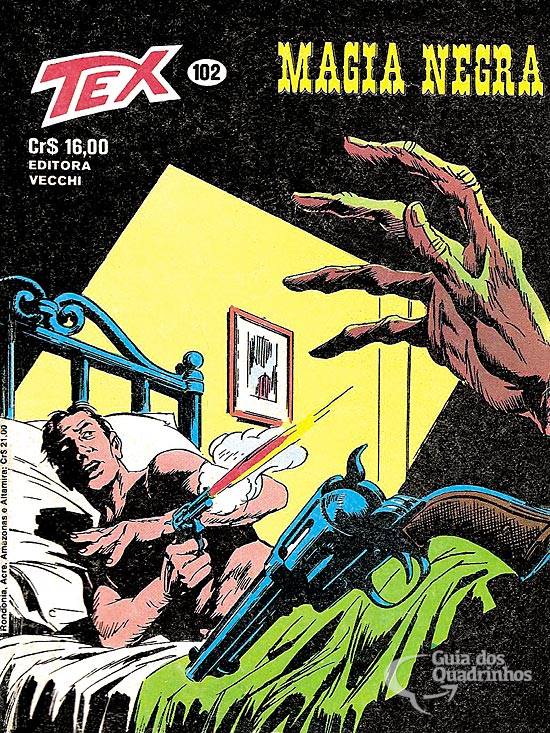 Título original italiano: “Magia nera”. Continuação da aventura na qual o diabólico Mefisto transfere todos os seus poderes para seu filho, em troca de que este vingue sua morte. Tex e seus parceiros desembarcam em Tampa, atrás de Yama e de sua cúmplice, que querem se apoderar de quatro amuletos usados pelos rangers que evitam os efeitos da magia negra provocada pela dupla...