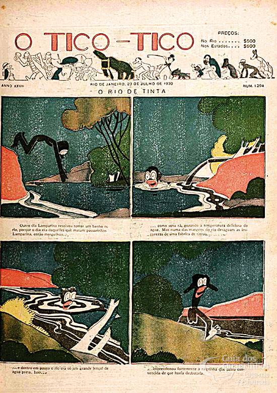 HQ em cores de “Mickey Mouse” (“As aventuras do Ratinho Curioso”, na versão do Tico-Tico). Título original americano: “Mickey Mouse in Death Valley”. Nosso herói e sua namorada Minnie (“Macaquita”, aqui) resolvem passear de carroça, com resultados hilários.