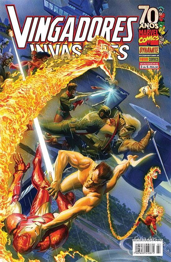 Continuação dos n°s. anteriores. O Steve Rogers e o Namor vindos do passado são capturados no aeroporta-aviões da Shield, mas seus aliados (os Invasores e os Novos Vingadores) conseguem fugir, ajudados pelo Dr. Estranho. Este explica que foi o Cubo Cósmico que trouxe os Invasores para o presente. Para mandá-los de volta a 1943, os heróis têm que localizar o objeto. Enquanto isso, o Tocha Humana, revoltado, lidera uma rebelião de andróides da Shield.