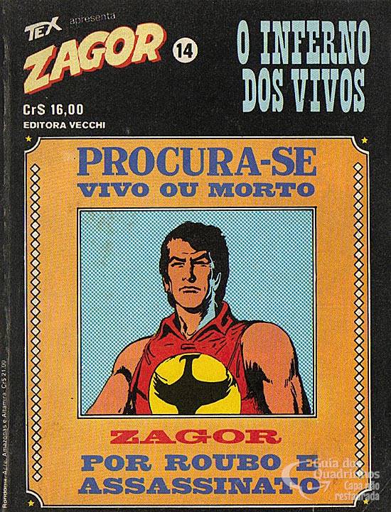 O espírito da machadinha escolta o transporte de uma grande soma de dinheiro. Mas o comboio é vítima de uma emboscada: os soldados que acompanham Zagor são mortos e nosso herói fica gravemente ferido. Ajudado por Tawar, um feiticeiro que deixou sua tribo, ele é acusado de ter roubado o dinheiro e é condenado a trabalhos forçados! Título original (em italiano): L'inferno dei vivi.
