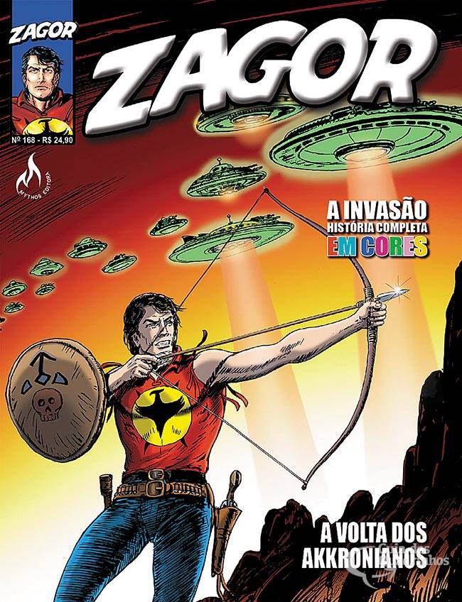 Colorido. Como é costume nas séries italianas, as edições centenárias apresentam uma história em cores. Anos depois de terem sido derrotados por Zagor, por meio das armas mágicas de Rakum, os Akkronianos estão de volta! A sombra dos implacáveis ??alienígenas do Sexto Planeta ameaça a Terra ... e começa a invasão! Apenas um herói pode desafiar seus planos conquistadores: o futuro da humanidade está nas mãos do Espírito da Machadinha!