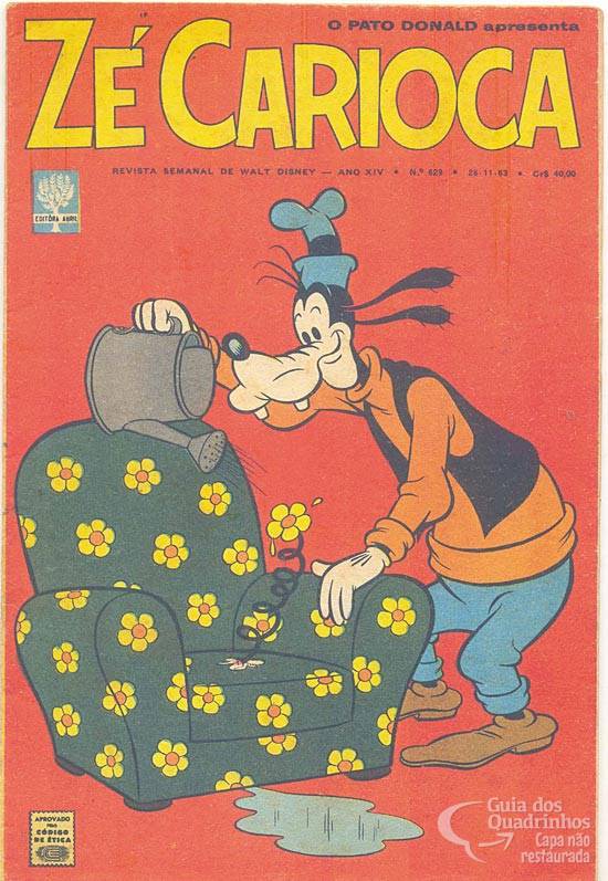 Prancha dominical de 31 de janeiro de 1960, com layout modificado. Os protagonistas originais eram Donald e Margarida, mas Igayara os substituiu por Zé e Rosinha.