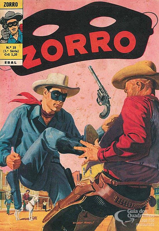 A ilustração de Ernest Nordli apareceu primeiramente na capa de Zorro nº 49 - 1ª série - março de 1958