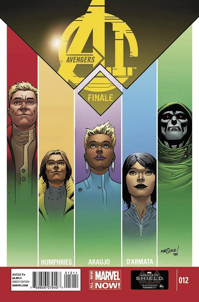 Capas das revistas que publicaram Avengers A.I. (2013) no Brasil na ordem das edições originais