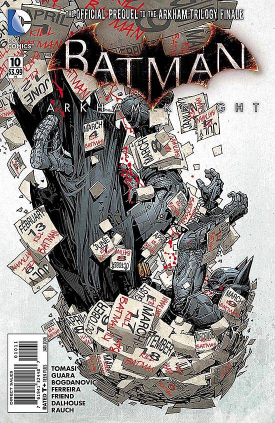 Capas das revistas que publicaram Batman: Arkham Knight (2015) no Brasil na ordem das edições originais