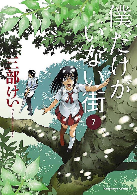 Capas das revistas que publicaram Boku Dake Ga Inai Machi (2013) no Brasil na ordem das edições originais