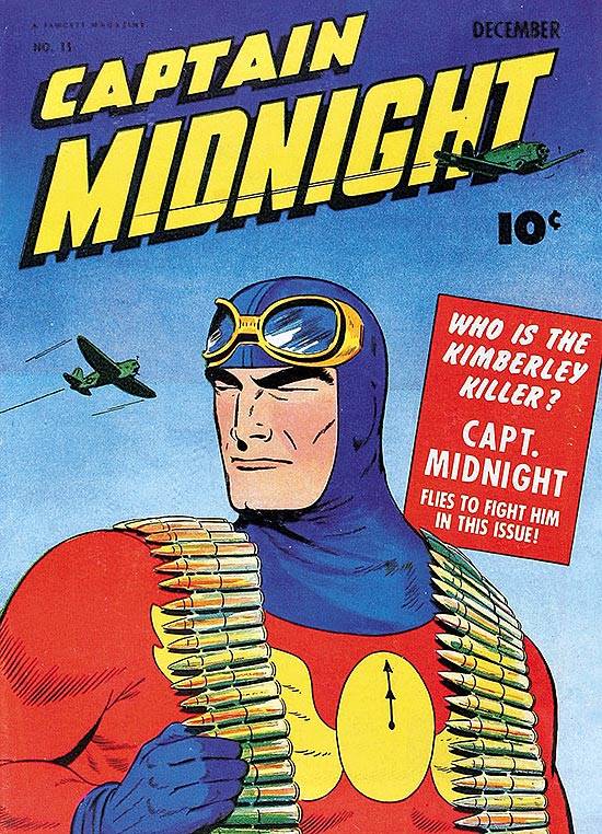 Capas das revistas que publicaram Captain Midnight (1942) no Brasil na ordem das edições originais