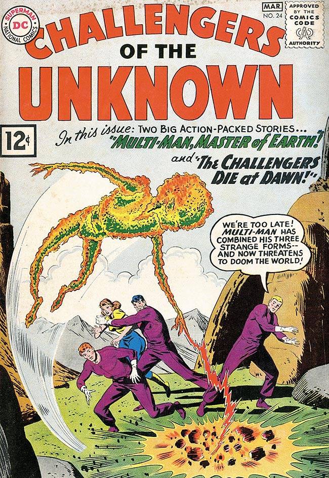 Capas das revistas que publicaram Challengers of The Unknown (1958) no Brasil na ordem das edições originais