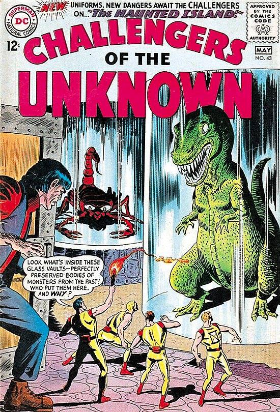 Capas das revistas que publicaram Challengers of The Unknown (1958) no Brasil na ordem das edições originais