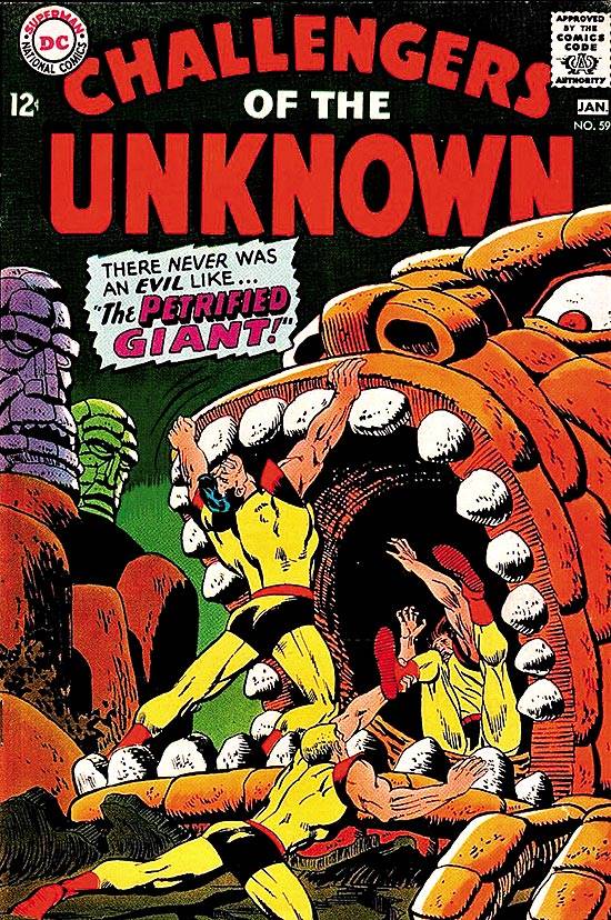 Capas das revistas que publicaram Challengers of The Unknown (1958) no Brasil na ordem das edições originais