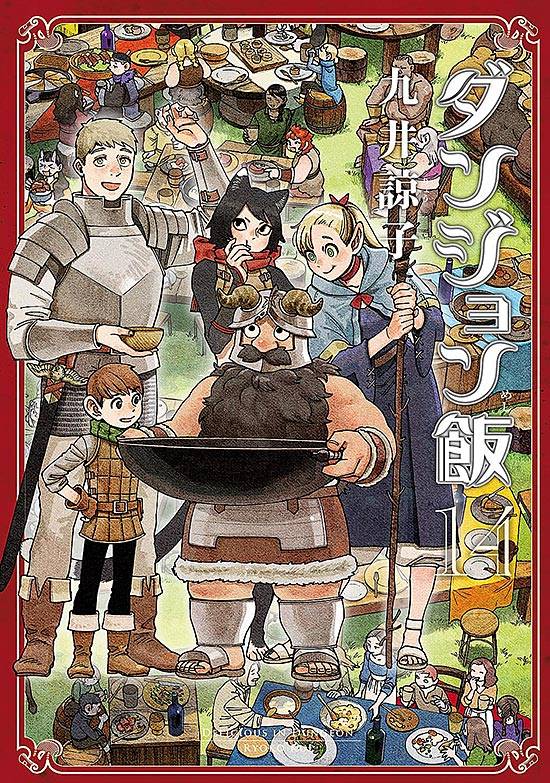 Capas das revistas que publicaram Dungeon Meshi (2014) no Brasil na ordem das edições originais