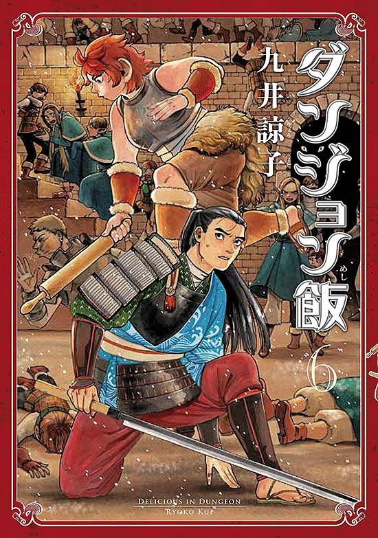 Capas das revistas que publicaram Dungeon Meshi (2014) no Brasil na ordem das edições originais