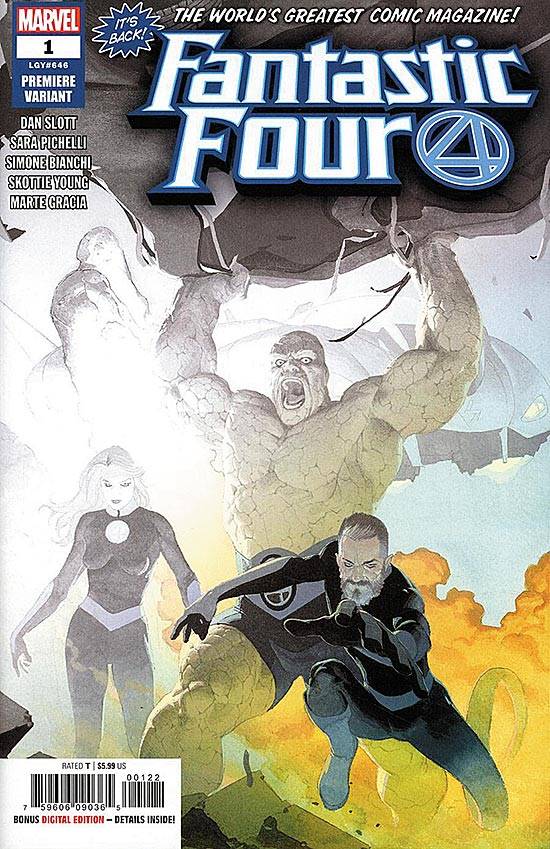 Capas das revistas que publicaram Fantastic Four (2018) no Brasil na ordem das edições originais