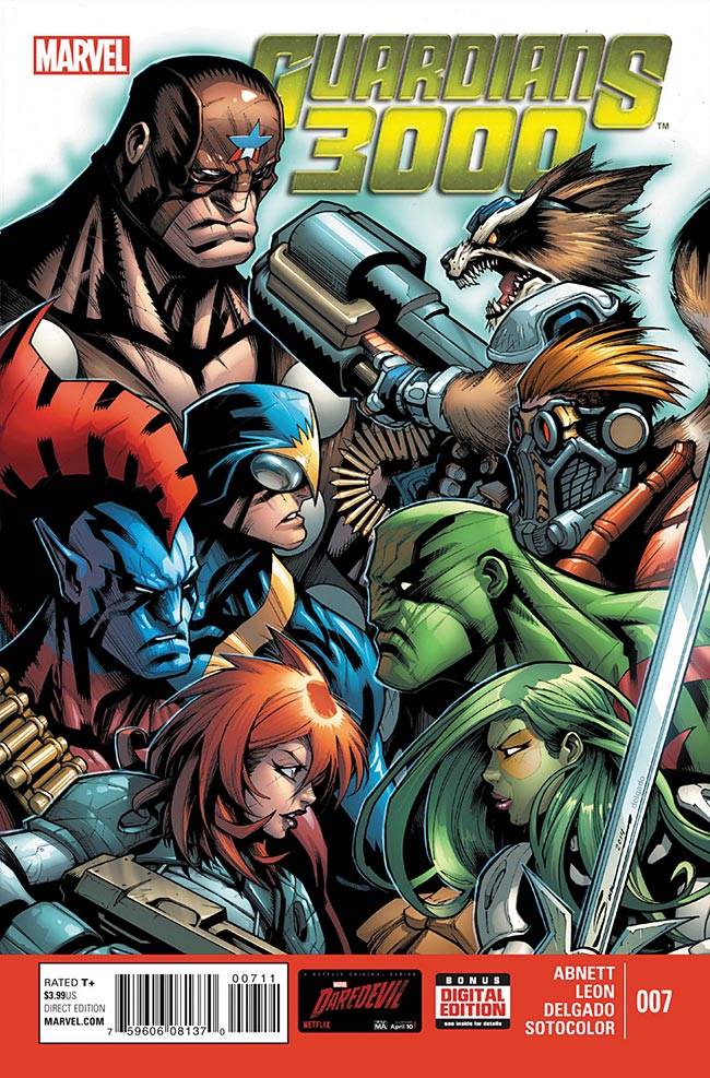 Capas das revistas que publicaram Guardians 3000 (2014) no Brasil na ordem das edições originais