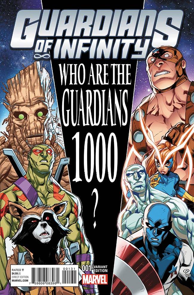 Capas das revistas que publicaram Guardians of Infinity (2016) no Brasil na ordem das edições originais
