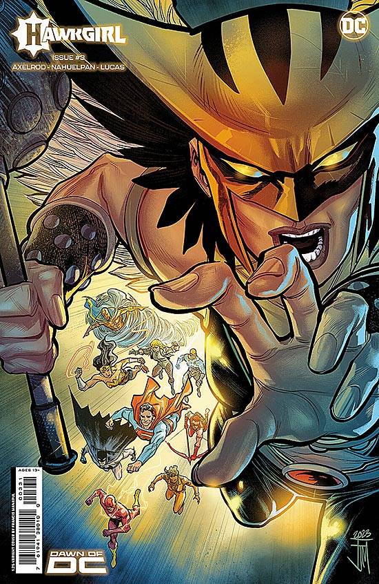 Capas das revistas que publicaram Hawkgirl (2023) no Brasil na ordem das edições originais