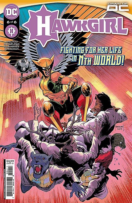 Capas das revistas que publicaram Hawkgirl (2023) no Brasil na ordem das edições originais