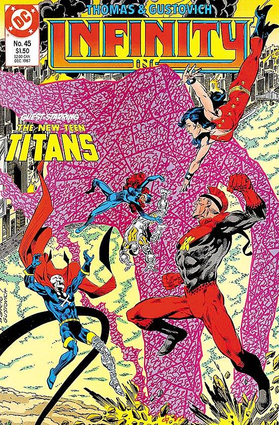Capas das revistas que publicaram Infinity, Inc. (1984) no Brasil na ordem das edições originais