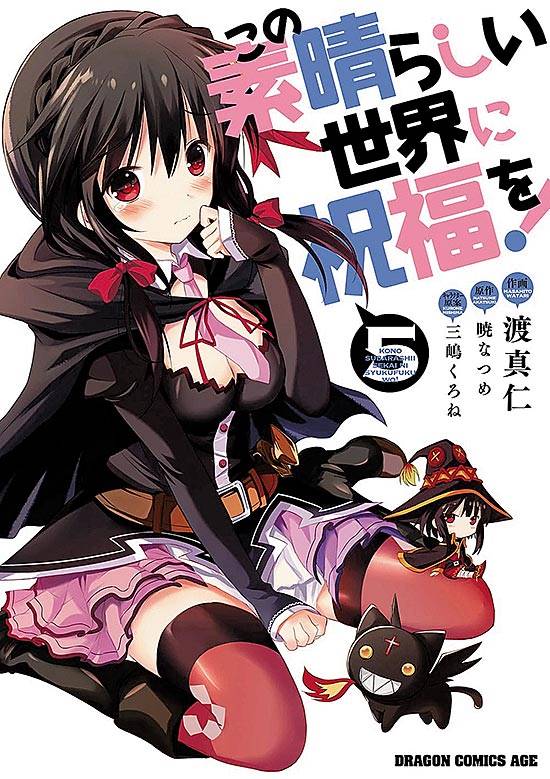 Capas das revistas que publicaram Kono Subarashii Sekai Ni Shukufuku Wo! (2015) no Brasil na ordem das edições originais