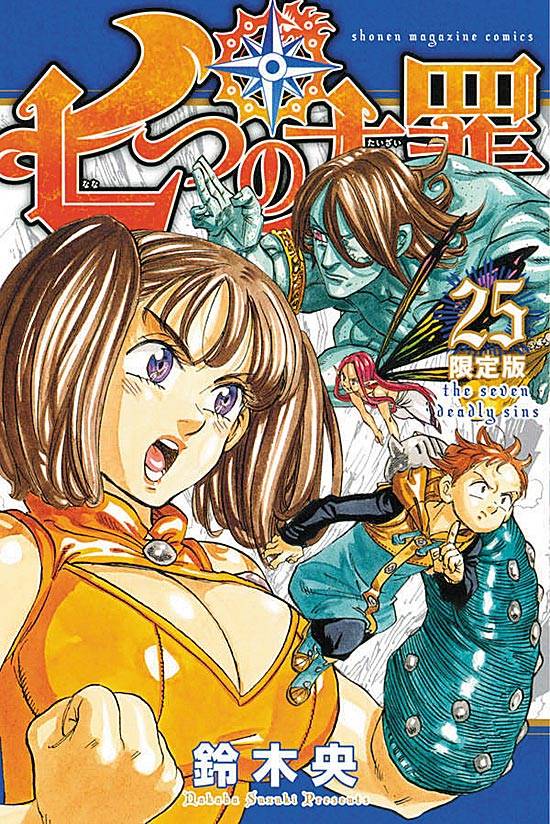 Capas das revistas que publicaram Nanatsu No Taizai (2013) no Brasil na ordem das edições originais