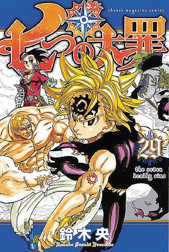 Capas das revistas que publicaram Nanatsu No Taizai (2013) no Brasil na ordem das edições originais