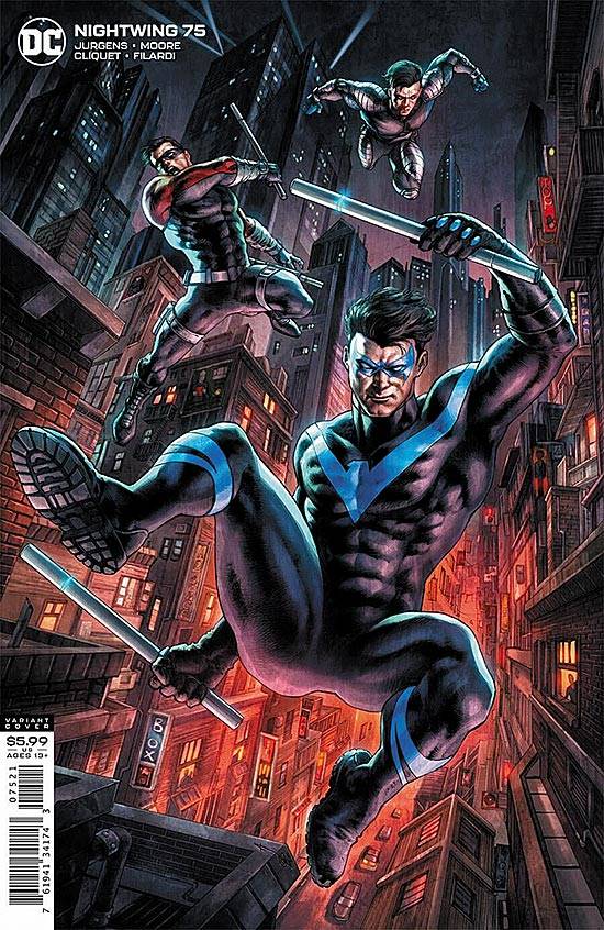 Capas das revistas que publicaram Nightwing (2016) no Brasil na ordem das edições originais