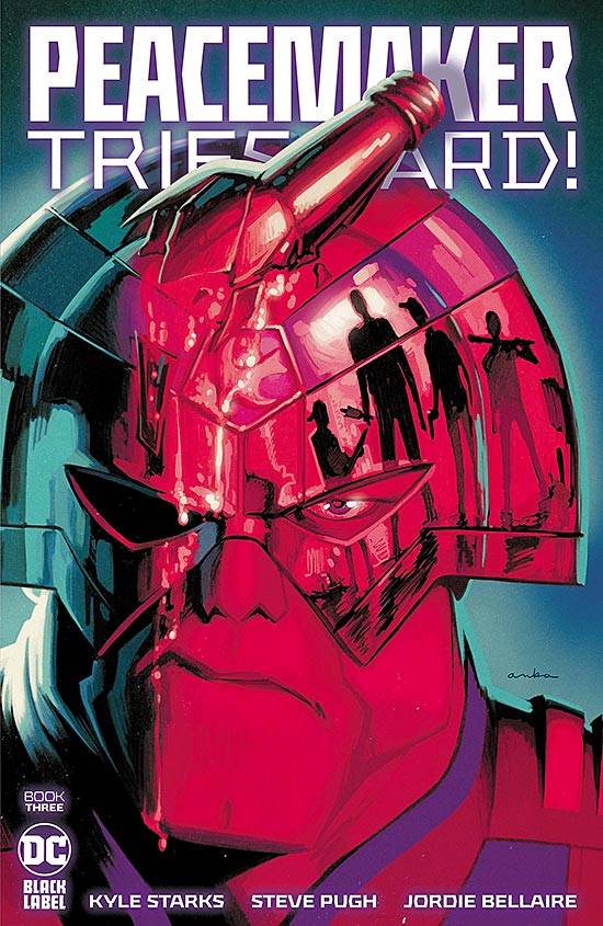 Capas das revistas que publicaram Peacemaker Tries Hard! (2023) no Brasil na ordem das edições originais