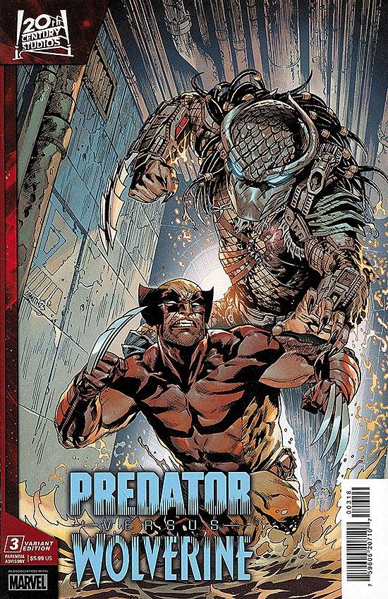 Capas das revistas que publicaram Predator Vs Wolverine (2023) no Brasil na ordem das edições originais