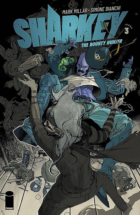 Capas das revistas que publicaram Sharkey The Bounty Hunter (2019) no Brasil na ordem das edições originais