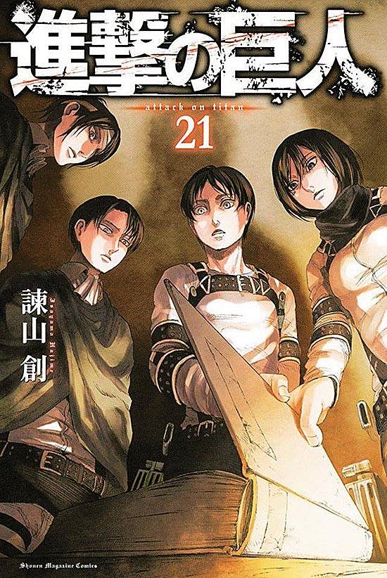 Capas das revistas que publicaram Shingeki No Kyojin (2010) no Brasil na ordem das edições originais