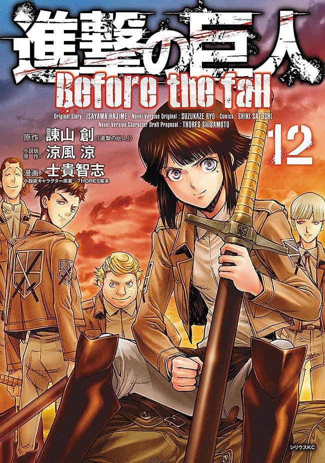 Capas das revistas que publicaram Shingeki No Kyojin: Before The Fall (2013) no Brasil na ordem das edições originais