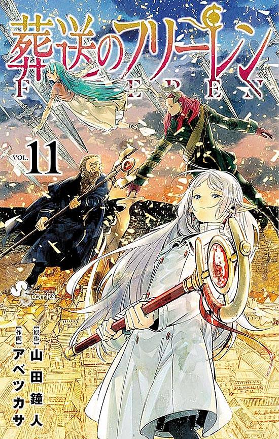 Capas das revistas que publicaram Sousou No Frieren (2020) no Brasil na ordem das edições originais