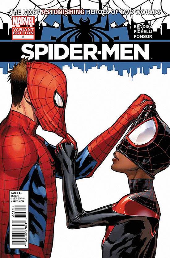 Capas das revistas que publicaram Spider-Men (2012) no Brasil na ordem das edições originais