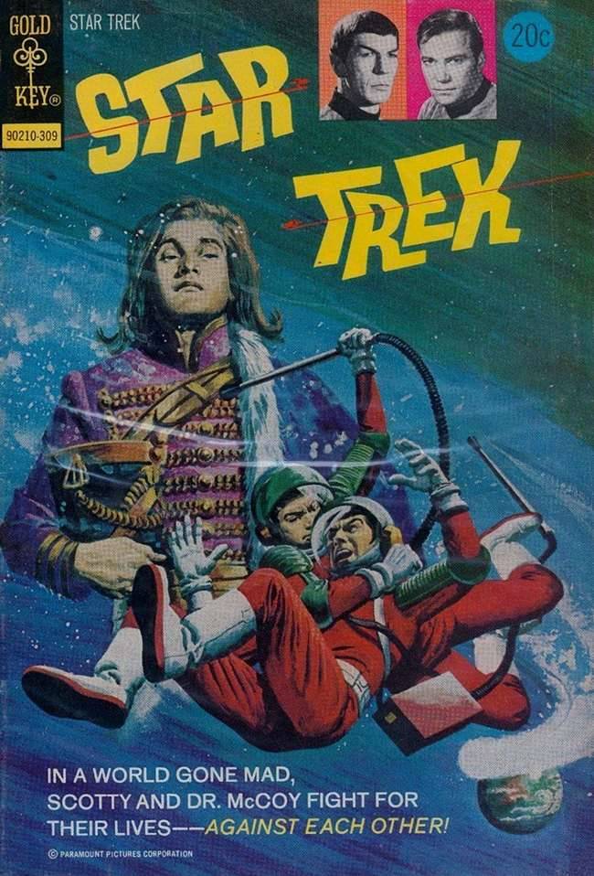 Repare o erro na chamada da capa: ela anuncia a luta entre Sr. Scott e Dr. McCoy, mas a ilustração mostra o médico lutando contra o Sr. Spock