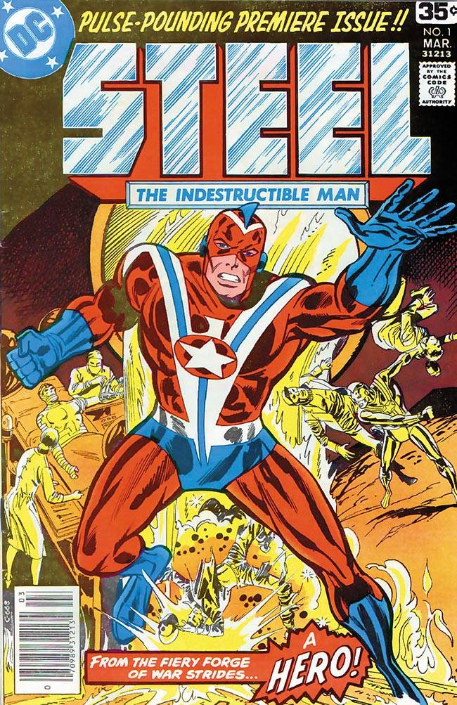 Capas das revistas que publicaram Steel, The Indestructible Man (1978) no Brasil na ordem das edições originais