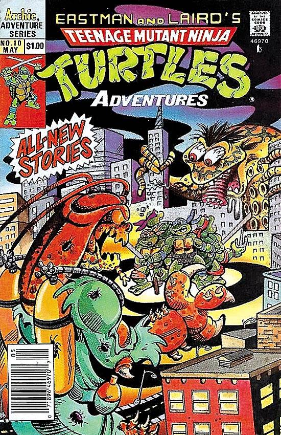 Capas das revistas que publicaram Teenage Mutant Ninja Turtles Adventures (1989) no Brasil na ordem das edições originais