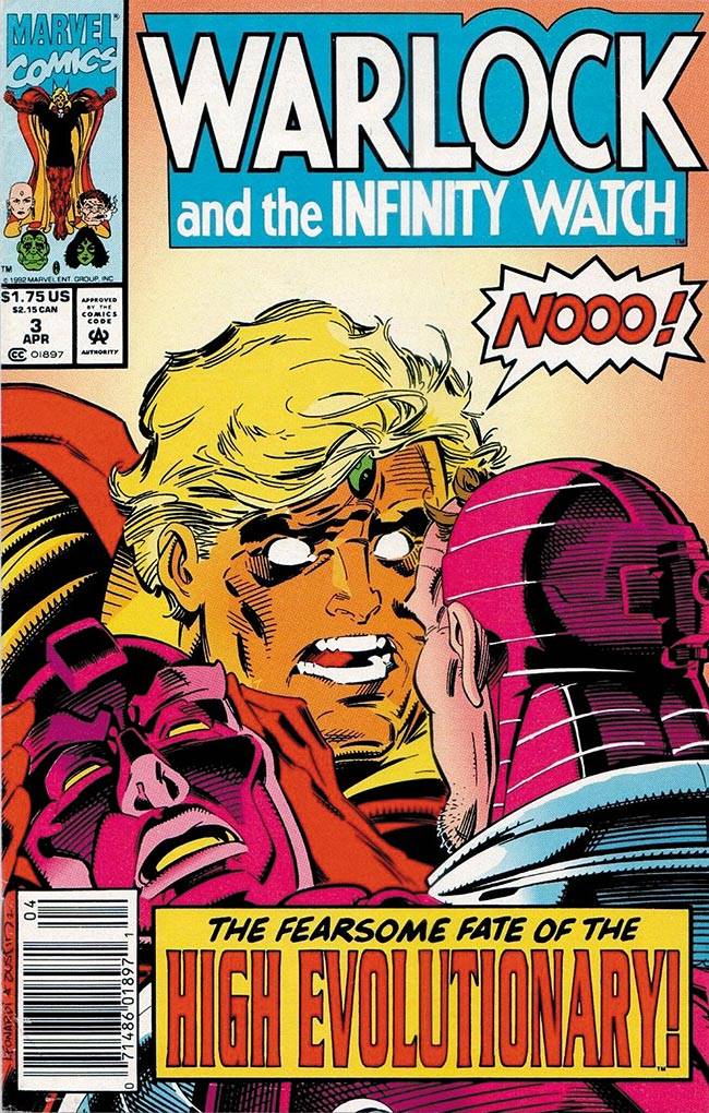 Capas das revistas que publicaram Warlock And The Infinity Watch (1992) no Brasil na ordem das edições originais