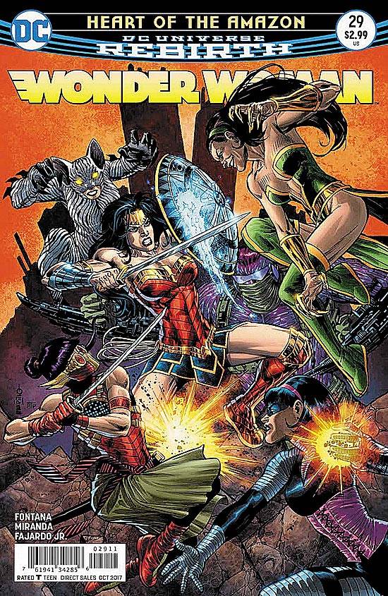 Capas das revistas que publicaram Wonder Woman (2016) no Brasil na ordem das edições originais