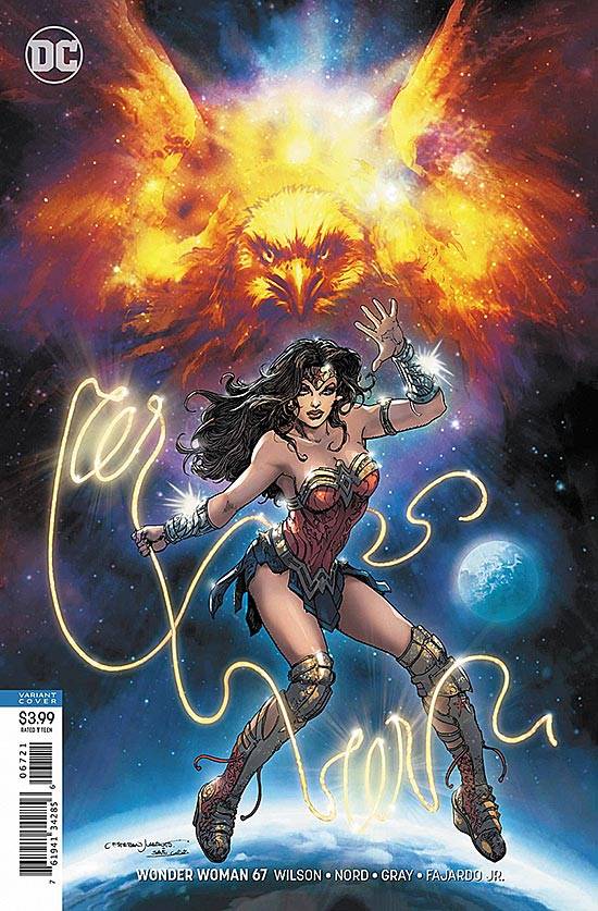 Capas das revistas que publicaram Wonder Woman (2016) no Brasil na ordem das edições originais