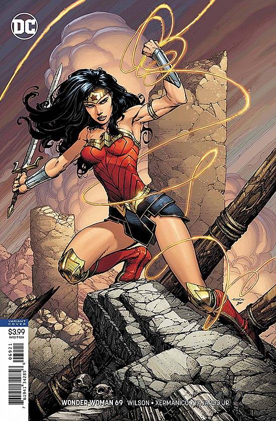 Capas das revistas que publicaram Wonder Woman (2016) no Brasil na ordem das edições originais
