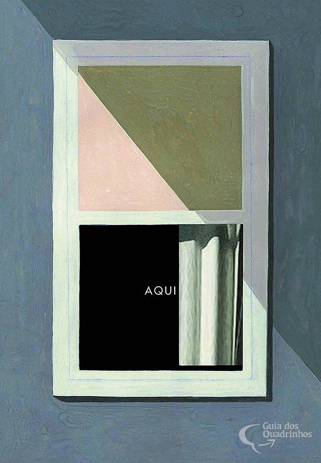 Aqui conta a história de um canto de uma casa, e o que aconteceu ali durante centenas de milhares de anos. Aguardado há quase três décadas, o livro é a versão final de uma ideia que McGuire publicou numa revista independente nos anos 1980. Dramático, cômico e amplamente inovador, é o testemunho não apenas de um grande artista no auge de sua forma, mas também das possibilidades infinitas da linguagem dos quadrinhos.