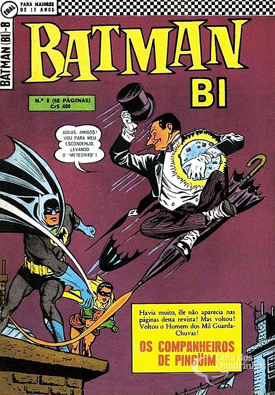Título original americano: “Partners in plunder!”. O Pinguim usa uma barragem de guardas-chuvas sobre Gotham City para despistar a Dupla Dinâmica. Foi esta história que serviu de base para o episódio (1966) “Fine feathered finks” (e sua continuação, “The Penguin's a jinx”), da série de TV “Batman”.