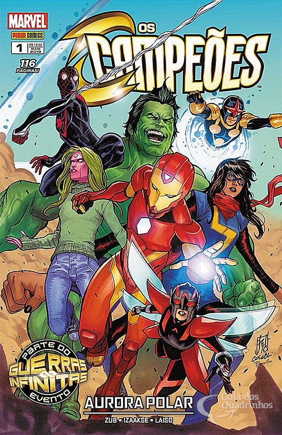 Personagens: Campeões II, Miss Marvel IV, Homem-Aranha II (Ultimate), Nova III, Hulk II, Vespa V, Coração de Ferro, Viv Vision, Mestre do Mundo