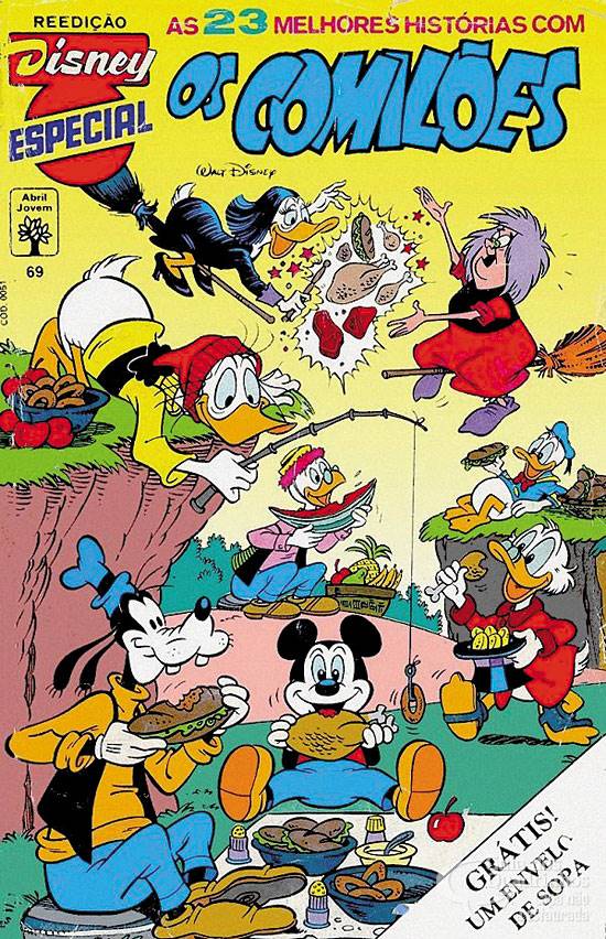 Título original italiano: “Topolino e la fiera della frutta”. Originalmente com 19 páginas e três tiras por página, foi remontada pela Abril de modo a ter quatro tiras por página.
