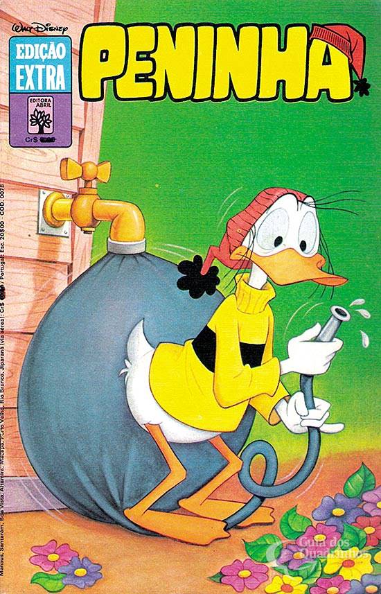 Nesta HQ sem créditos de autoria, Peninha pinta um retrato de Donald.
