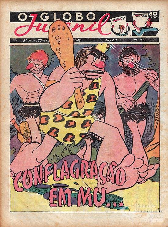 Conflagração no reino de Mu. Historieta da chamada da capa.