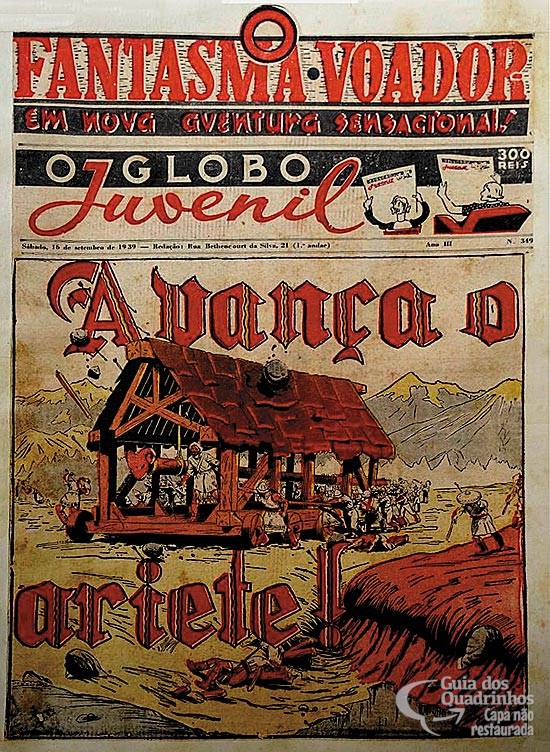 HQ em preto-e-branco da pág. 5. Reunindo tiras publicadas a partir de 4 de setembro de 1939. O título em português está grafado neste número como “O Fantasma Voador em nova aventura” (em outros números já aparece como “O Círculo de Ouro”). Título original americano: “The Golden Circle”.