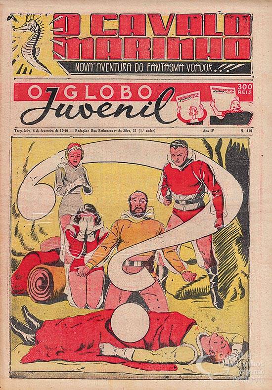 HQ publicada na página central colorida, como “top” de “Flash Gordon”. Capítulo 31 de uma aventura sem título em português de Jim das Selvas. Publicada originalmente em 19 de novembro de 1939.